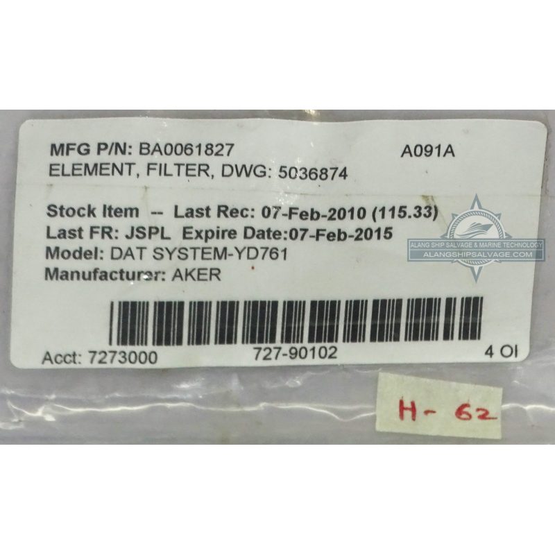 PRODUCT NAME : AKER, ELEMENT, FILTER, DWG.5036874, DAT SYSTEM-YD761 (PN. BA0061827)