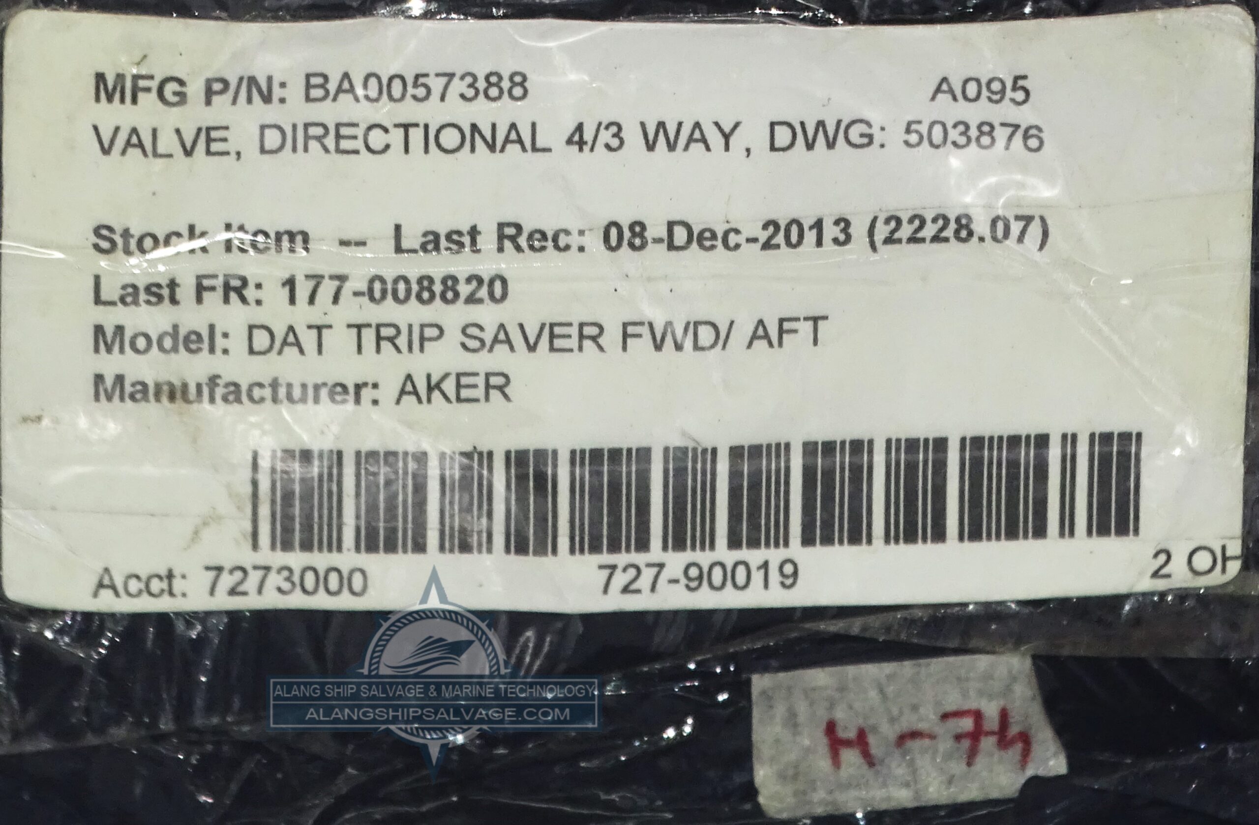 PRODUCT NAME : AKER, VALVE, DIRECTIONAL 4, 3 WAY, DWG ; 503876, DAT TRIP SAVER FWD, AFT (PN.BA0057388)