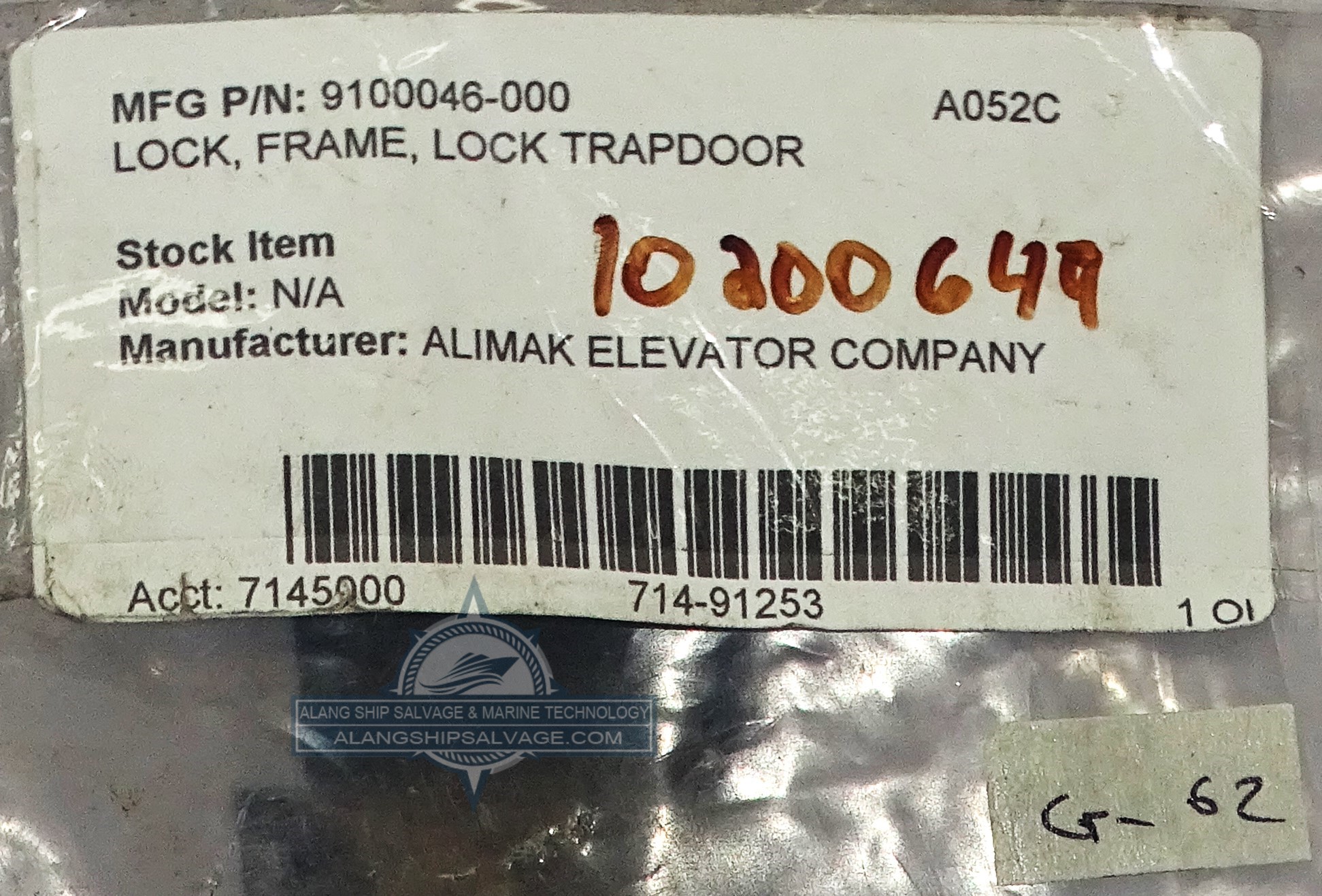 PRODUCT NAME : ALIMAK ELEVATOR COMPANY, LOCK, FRAME, LOCK TRAPDOOR,N,A (PN. 9100046-000)