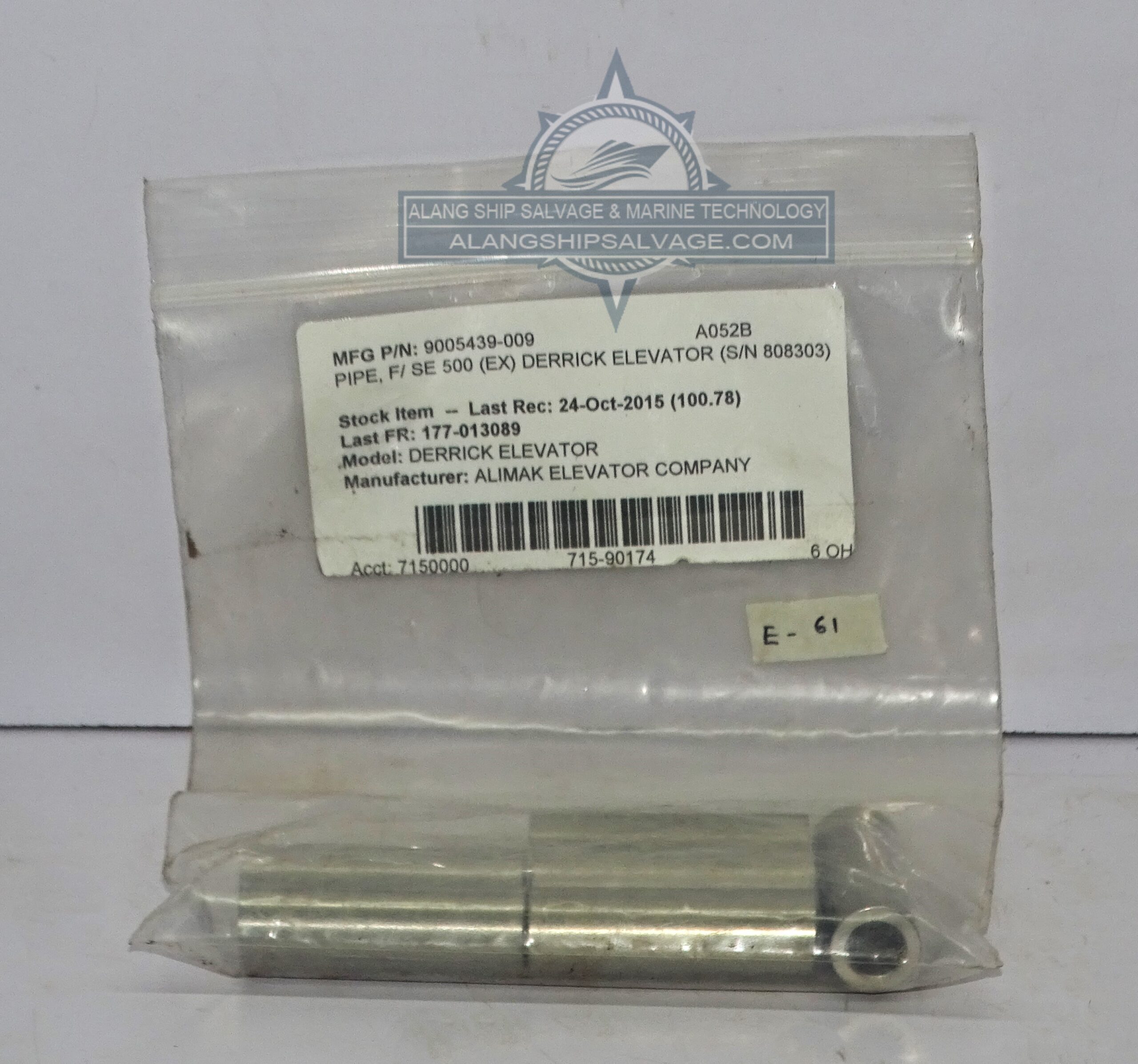 PRODUCT NAME : ALIMAK ELEVATOR COMPANY,DERRICK ELEVATOR PIPE, F,SE 500 (EX) DERRICK ELEVATOR (S,N 808303), (PN.9005439-009)
