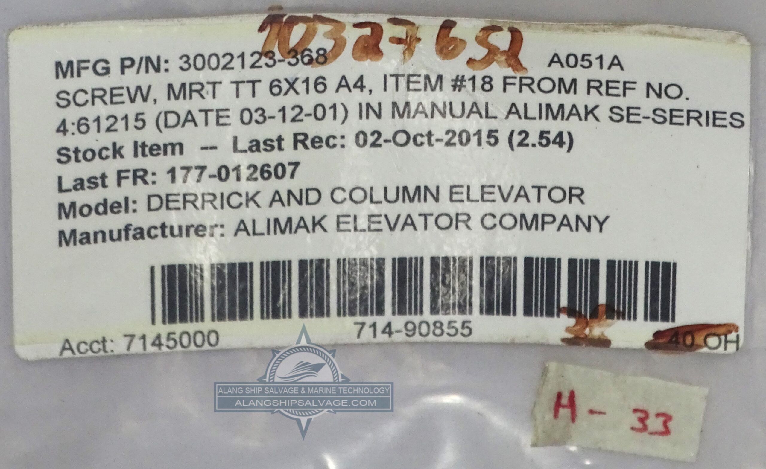 The ALIMAK Elevator Company’s Screw MRT TT 6×16 A4 for SE-Series Derrick and Column Elevators (Part Number: 3002123-368) is a high-quality, precision-engineered fastening component designed specifically for use in the SE-Series elevator systems.