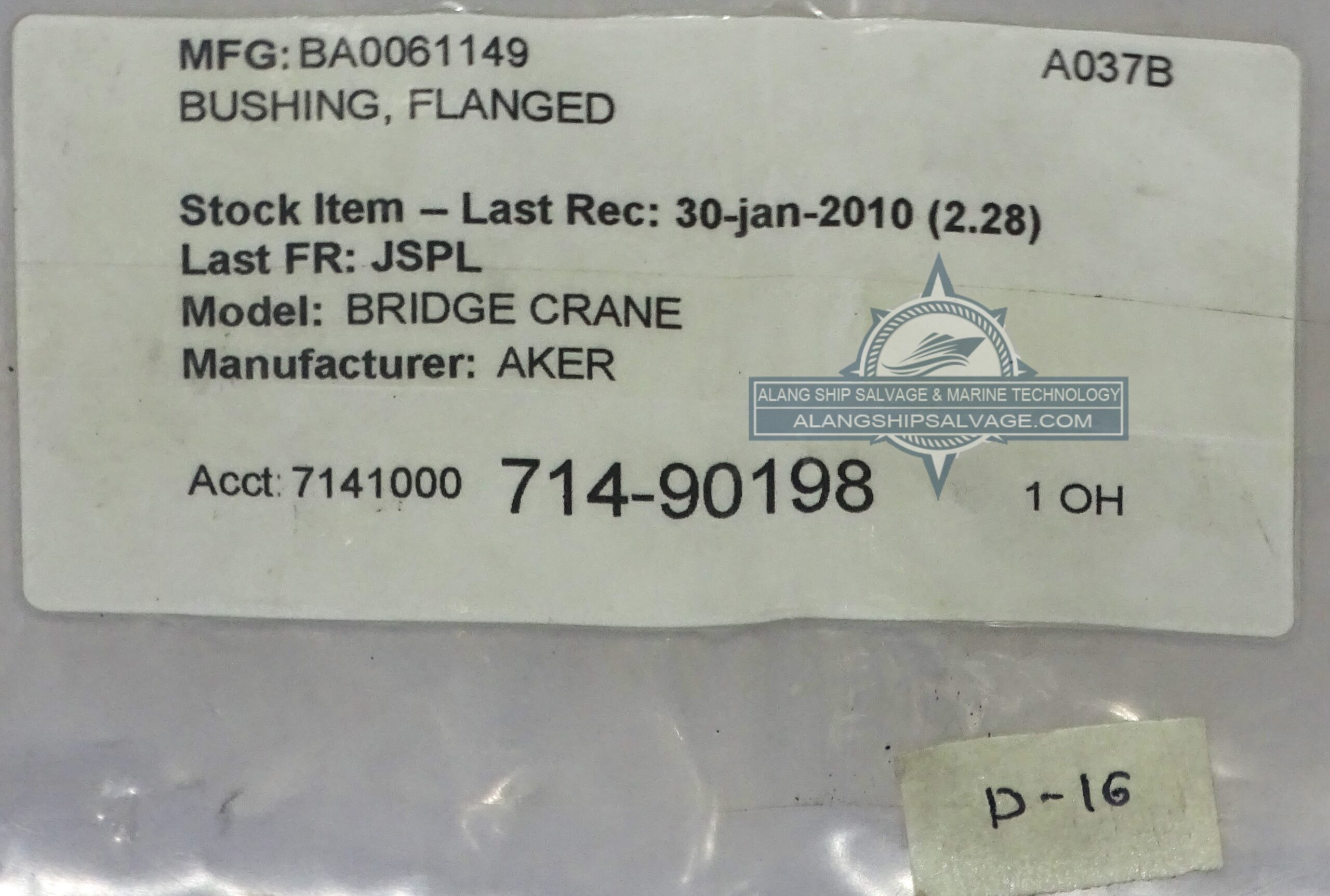 PRODUCT NAME : BRIDGE CRANE (PN.BA0061149) BUSHING, FLANGED, MANUFACTURER.AKER