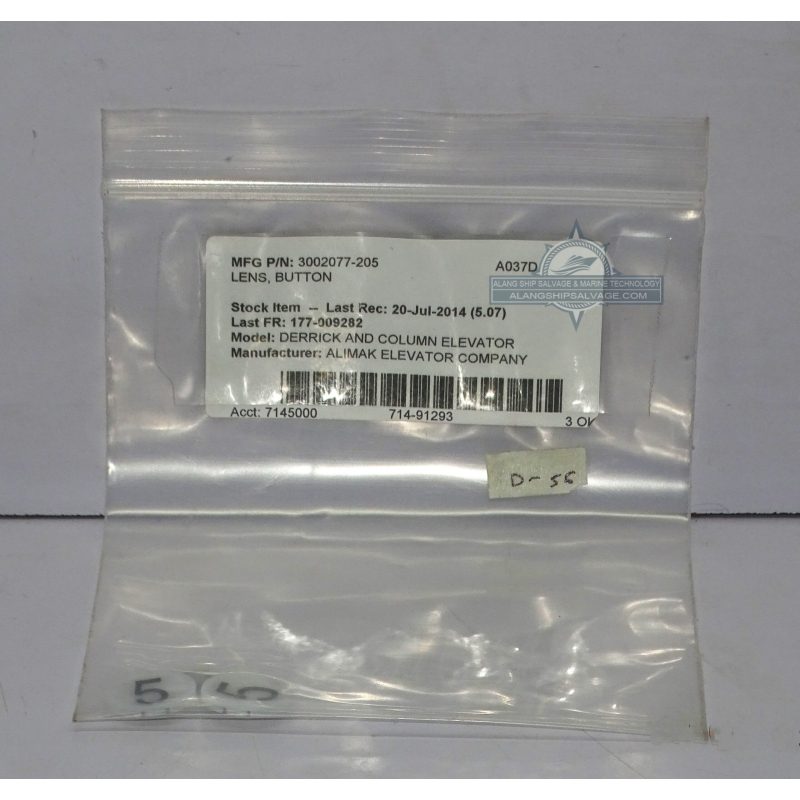 PRODUCT NAME : DERRICK AND COLUMN ELEVATOR (PN.3002077-205) LENS, BUTTON, MANUFACTURER.ALIMAK ELEVATOR COMPANY