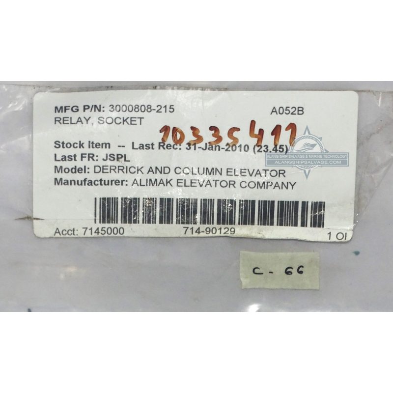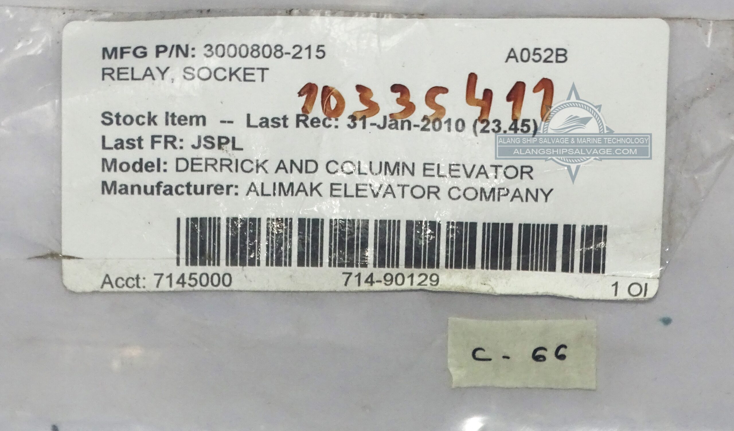 PRODUCT NAME : DERRICK AND COLUMN ELEVATOR (RELAY, SOCKET) (PN.3000808-215) MANUFACTURER.ALIMAK ELEVATOR COMPANY