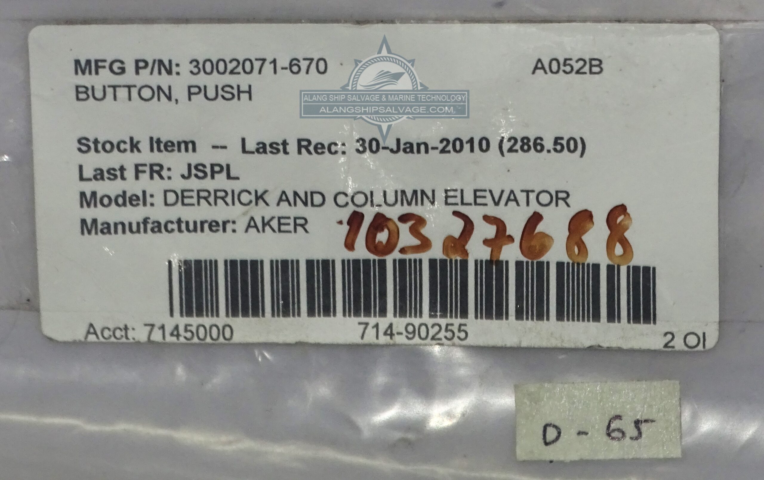 PRODUCT NAME : DERRICK AND LOLUMN ELEVATOR (PN.3002071-670) BUTTOM, PUSH, MANUFACTURER.AKER