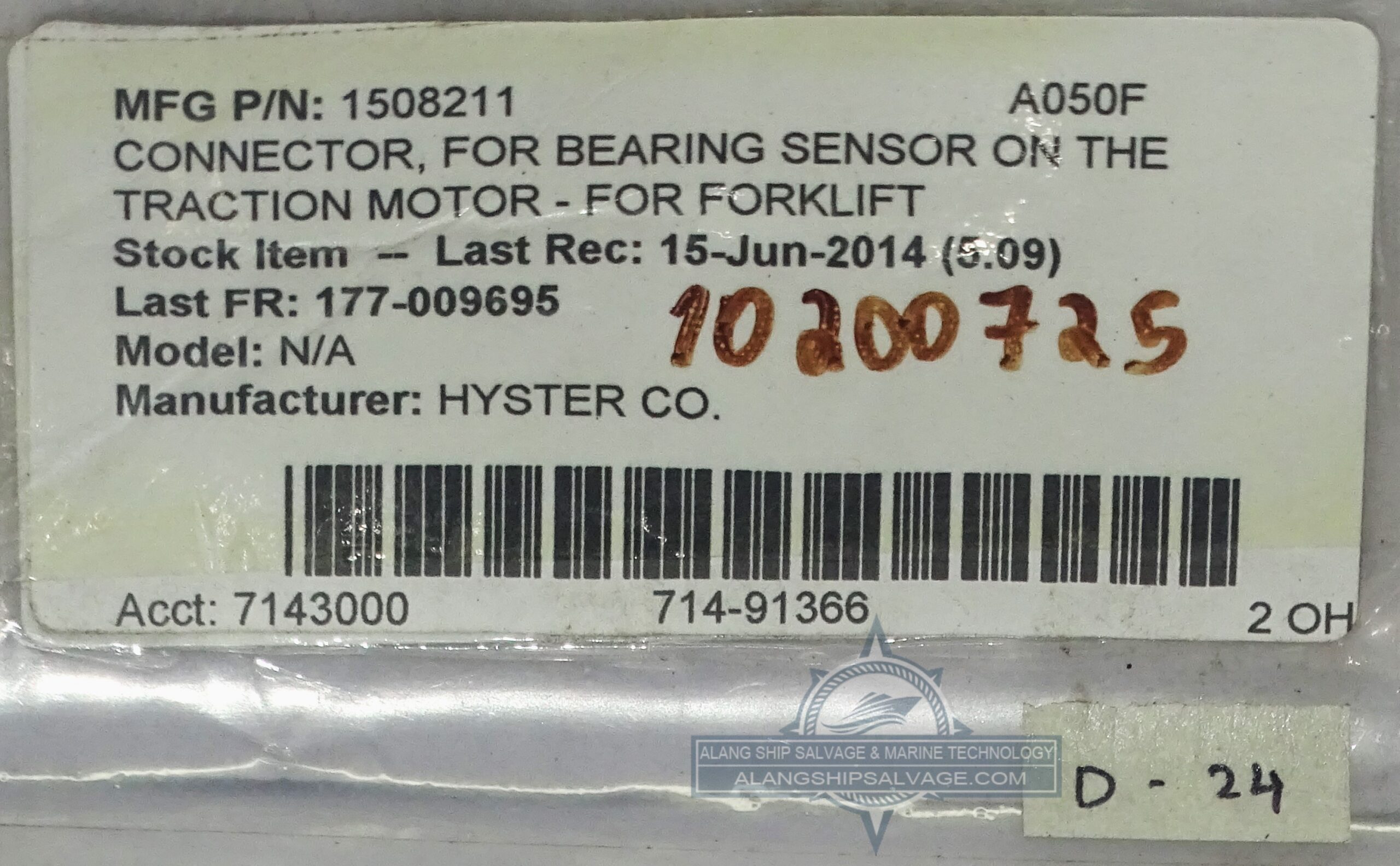 PRODUCT NAME : HYSTER CO, N, A CONNECTOR, FOR BEARING SENSOR ON THE TRACTION MOTOR – FOR FORKLIFT (PN.1508211)