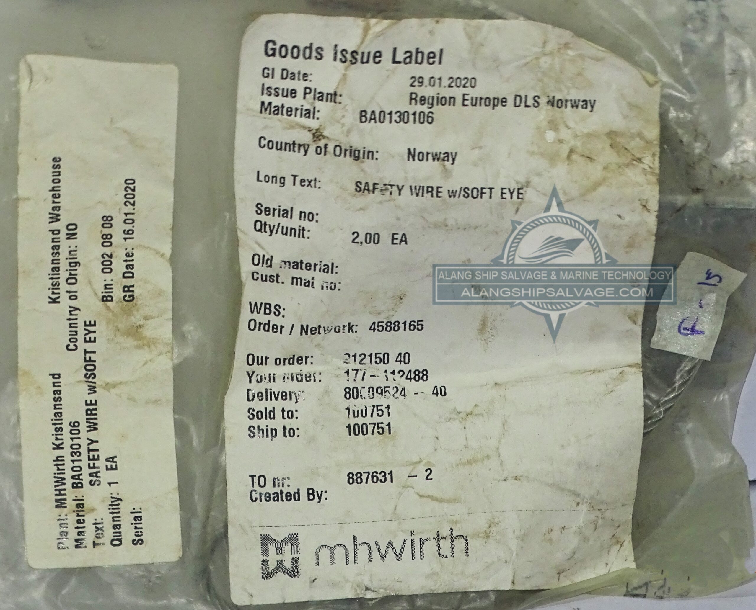 PRODUCT NAME : MHWIRTH, SAFATY WIRE W, SOFT EYE (MATRIAL.BA0130106) QTY.1 EA